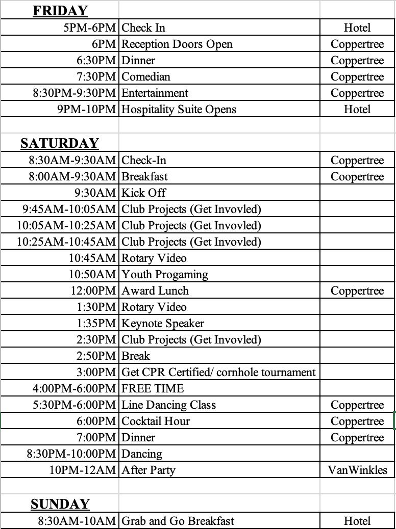 We can’t wait to gather with all of you for an unforgettable weekend filled with Rotary spirit, friendship, and celebration.